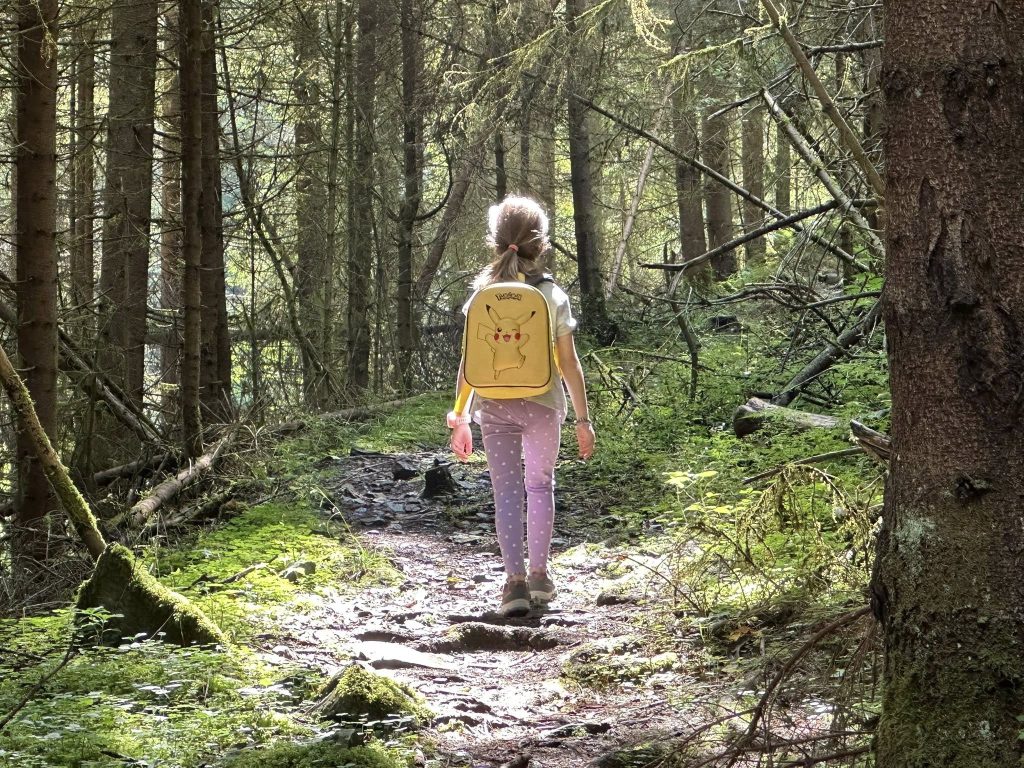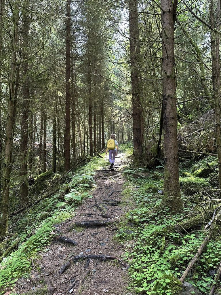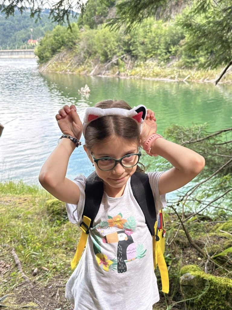 Am făcut o drumeție pe drumul forestier de lângă lac și prin pădure, coborând jos la apă. Am mâncat zmeură de pe marginea drumului.