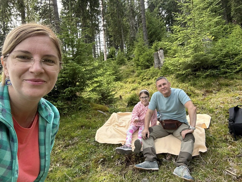 Ne-am oprit la picnic și ne-am bucurat de ”baia de pădure. Am cules și mâncat afine.