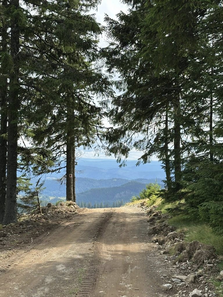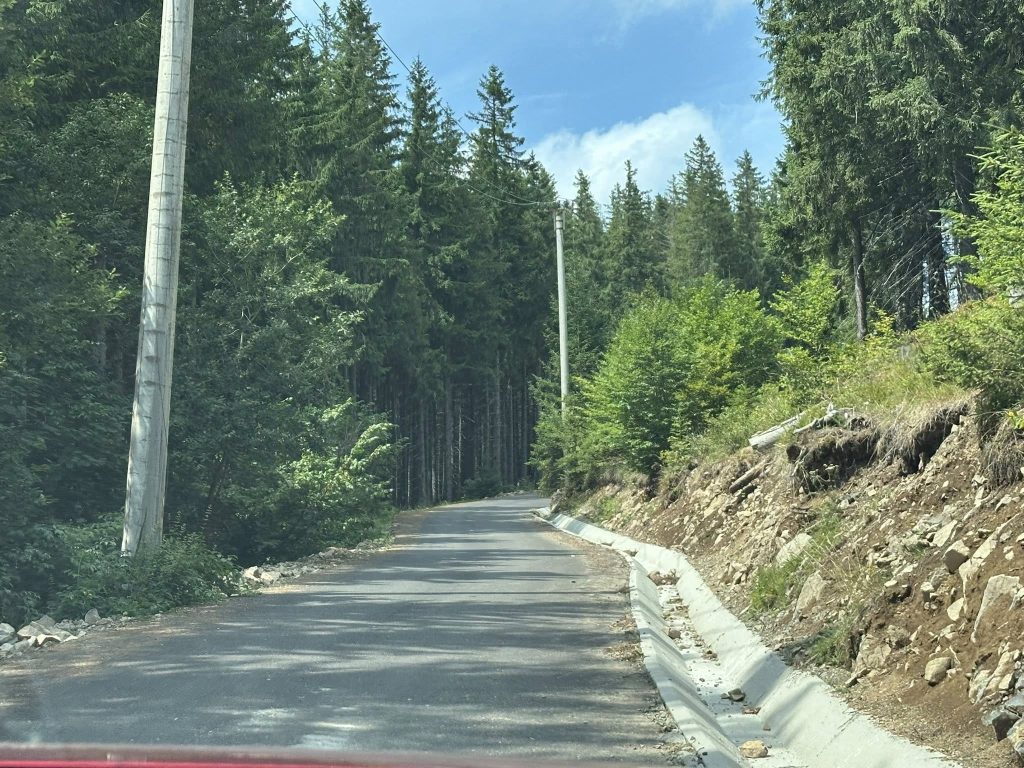 Am mers cu mașina cât a fost drumul cu astfalt și încă un pic pe drum forestier. Nu am urcat până în vârful muntelui, drumul este de pământ cu piatră mare și pentru mașina noastră era dificil. Totuși, am mers destul de mult și pe drum cu asfalt, ceea ce indică semne bune de reabilitare.