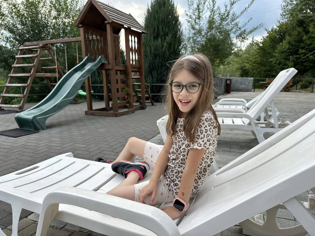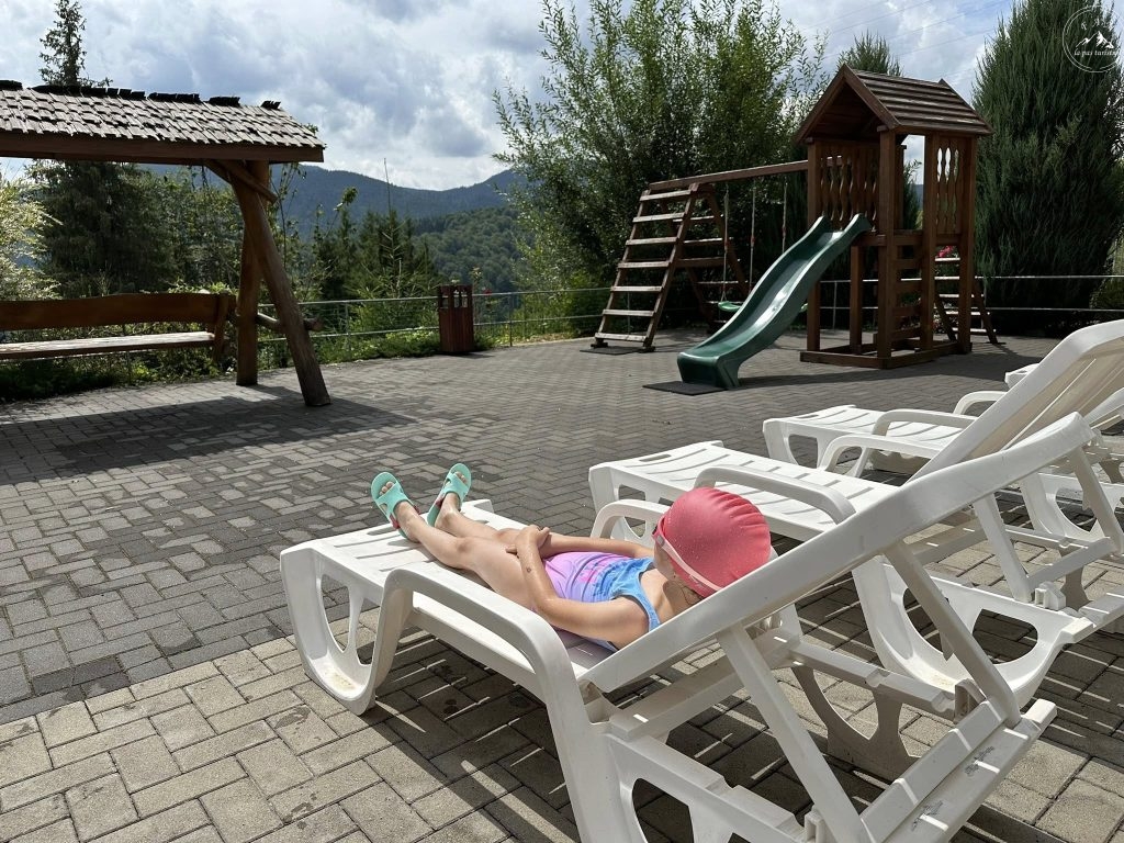 De la pisicină se poate ieși direct în curte unde sunt șezlonguri.