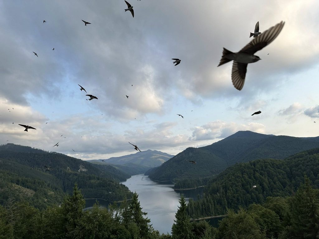 Dimineți cu aer curat, răcoare, belvedere și multe, multe rândunele. Le-am admirat zilnic de la balconul camerei.