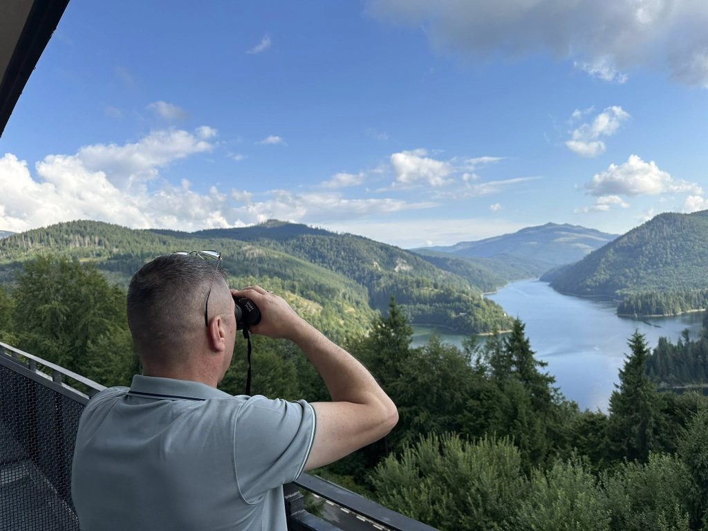 Plecǎm de la Pensiunea Art 1000 sǎ explorăm împrejurimile. Primul popas este punctul de belvedere asupra barajului Drǎgan, care este chiar la drum.