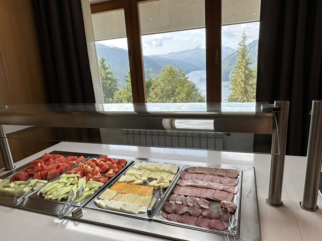 Ne-a plăcut și mâncarea și diversitatea micului dejun. Meniul și prețurile aferente pot fi vizualizate pe site. Restaurantul este frumos amenajat cu elemente din natură (licheni).