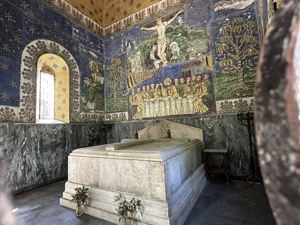 Ne-a impresionant și mausoleul cu a sa poveste, în care este înmormântat alături de soția sa Veturia Goga (96 ani), care a lucrat tot mozaicul. “Douăzeci de ani am lucrat la acest mozaic și eram într-o lupta continua… Luam mâinile de pe lucru si cădeam în disperare si oboseala. Îmi spuneam: „Mi-am luat o însărcinare și trebuie să o duc până la capăt”…. Nu doresc altceva decât, făcându-mi datoria aici, sa trec și eu împacată, dincolo, în somnul cel mare…”. Sursa www.muzeuloctaviangoga.ro.