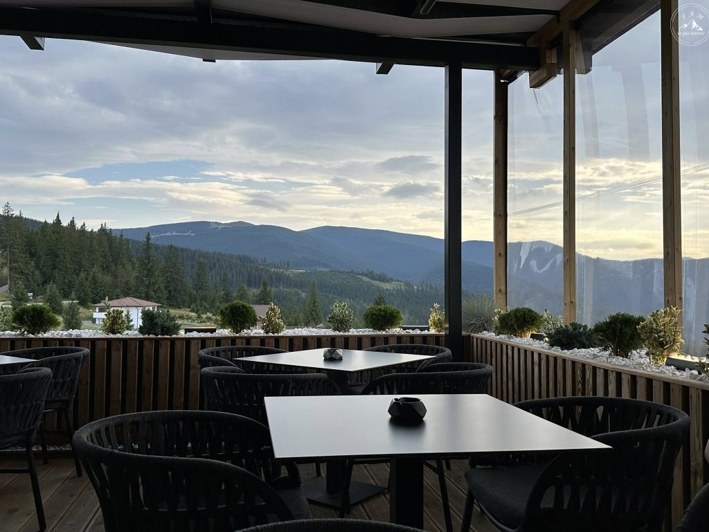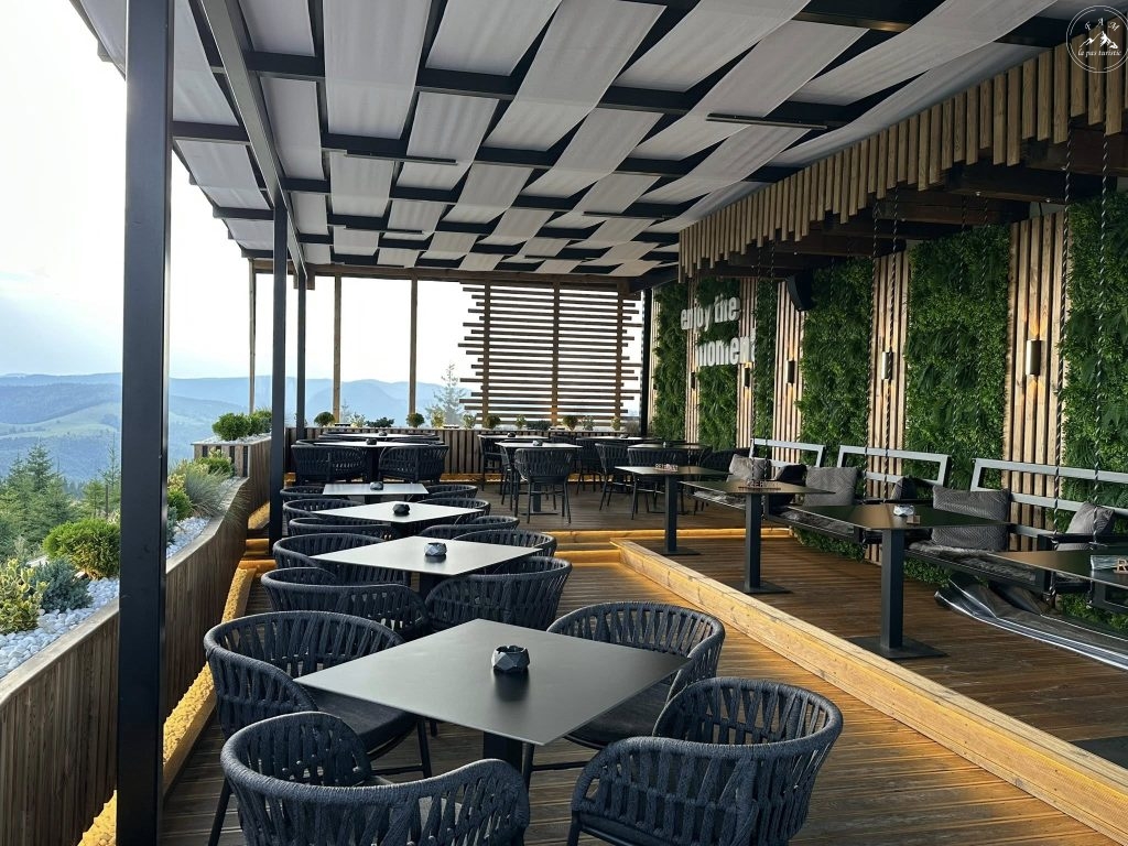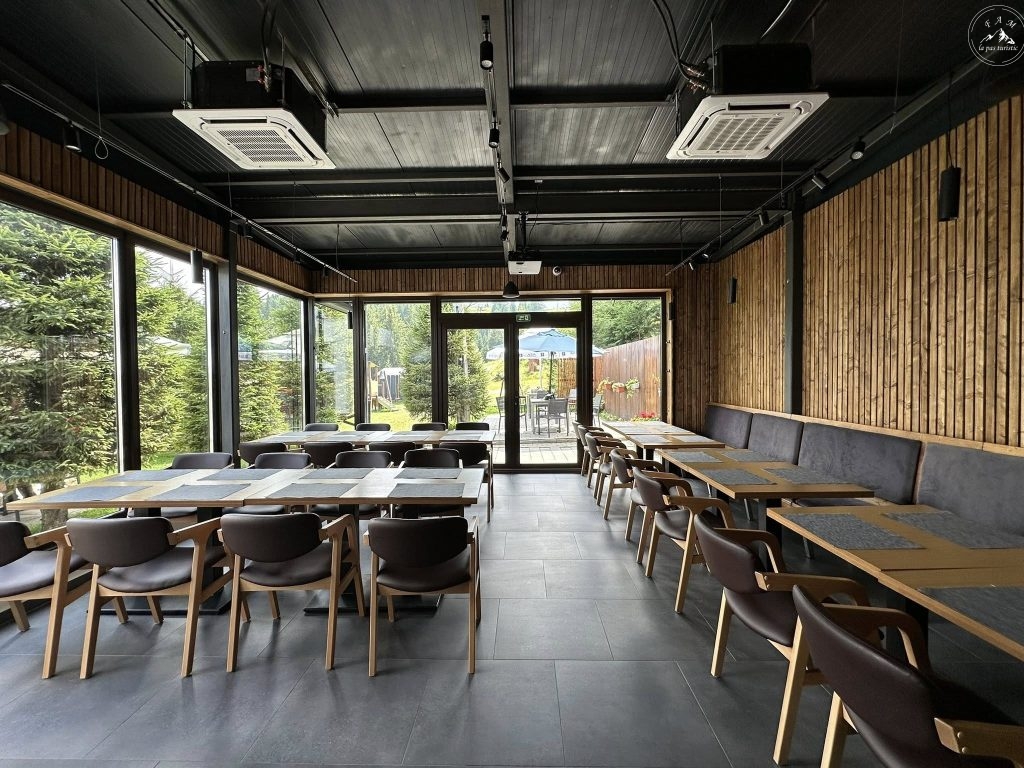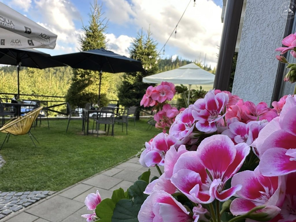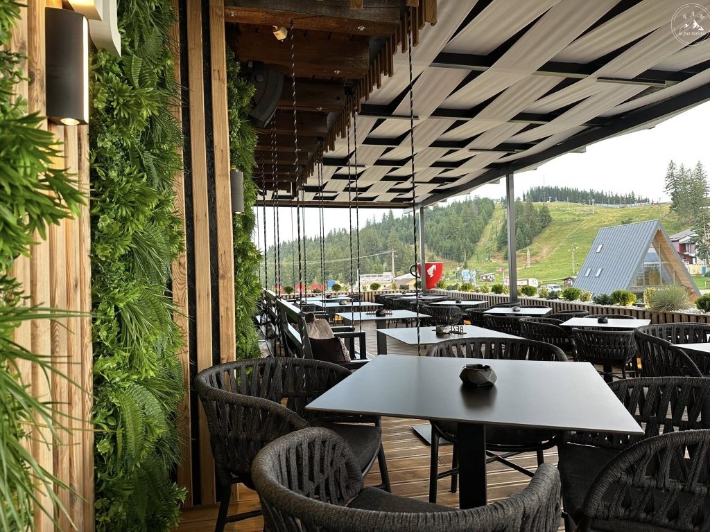 Grădina de vară are 60 de locuri și ești înconjurat de brazi.