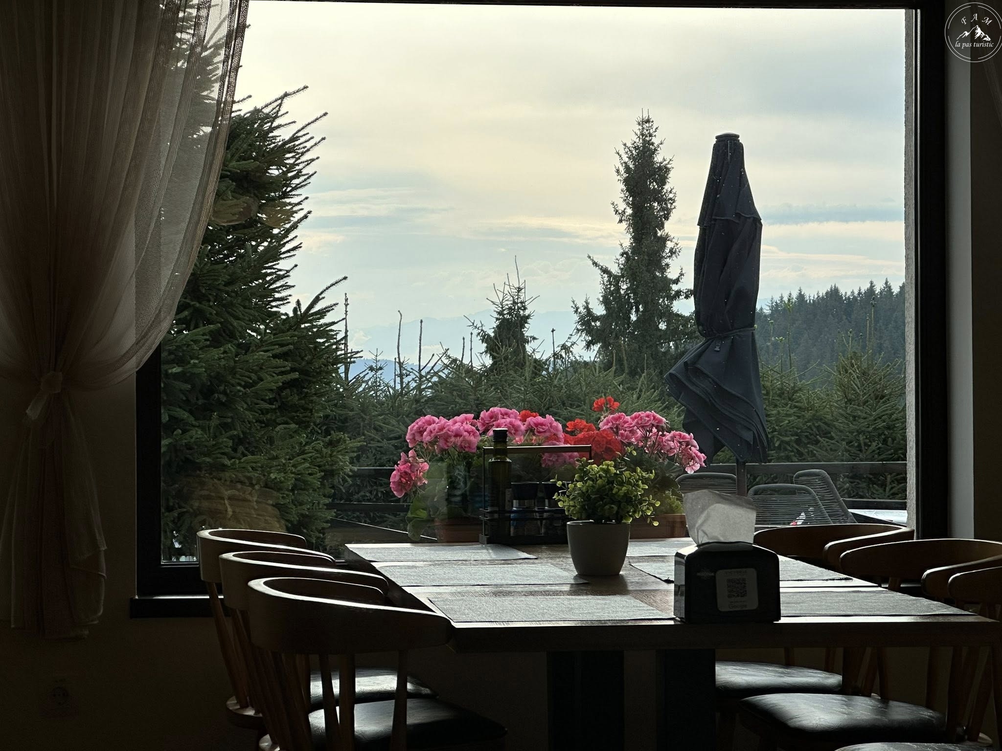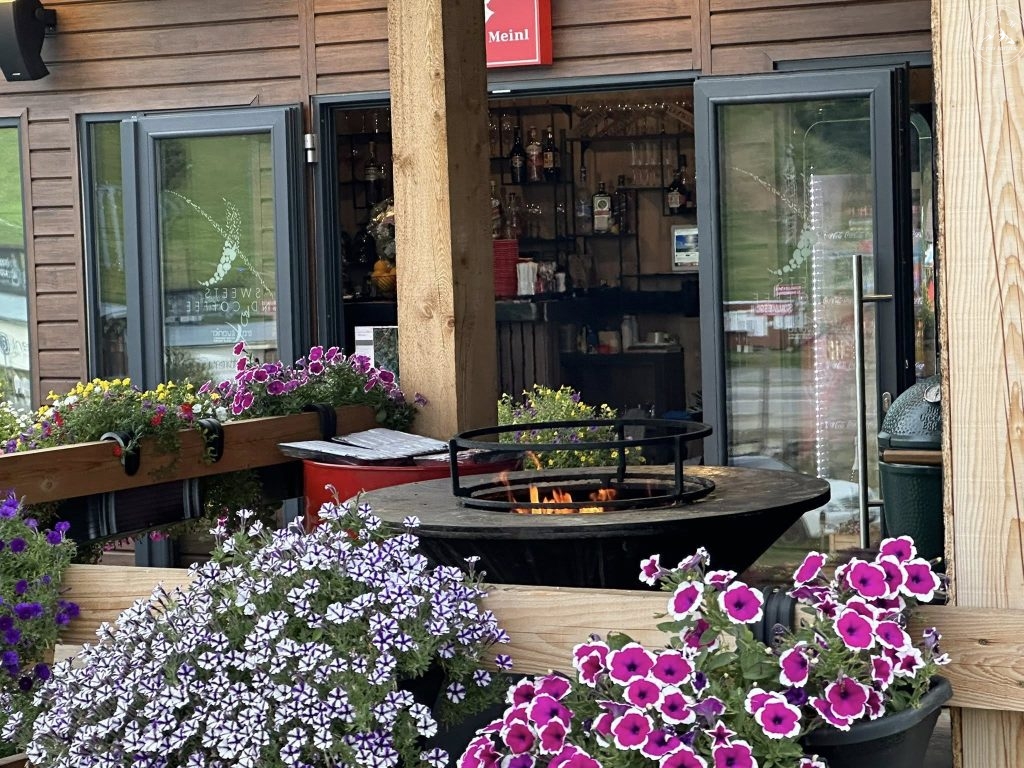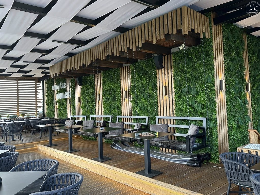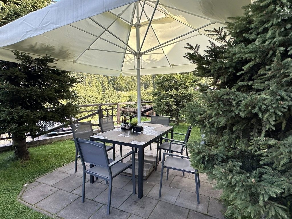Grădina de vară are 60 de locuri și ești înconjurat de brazi.