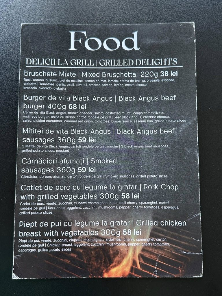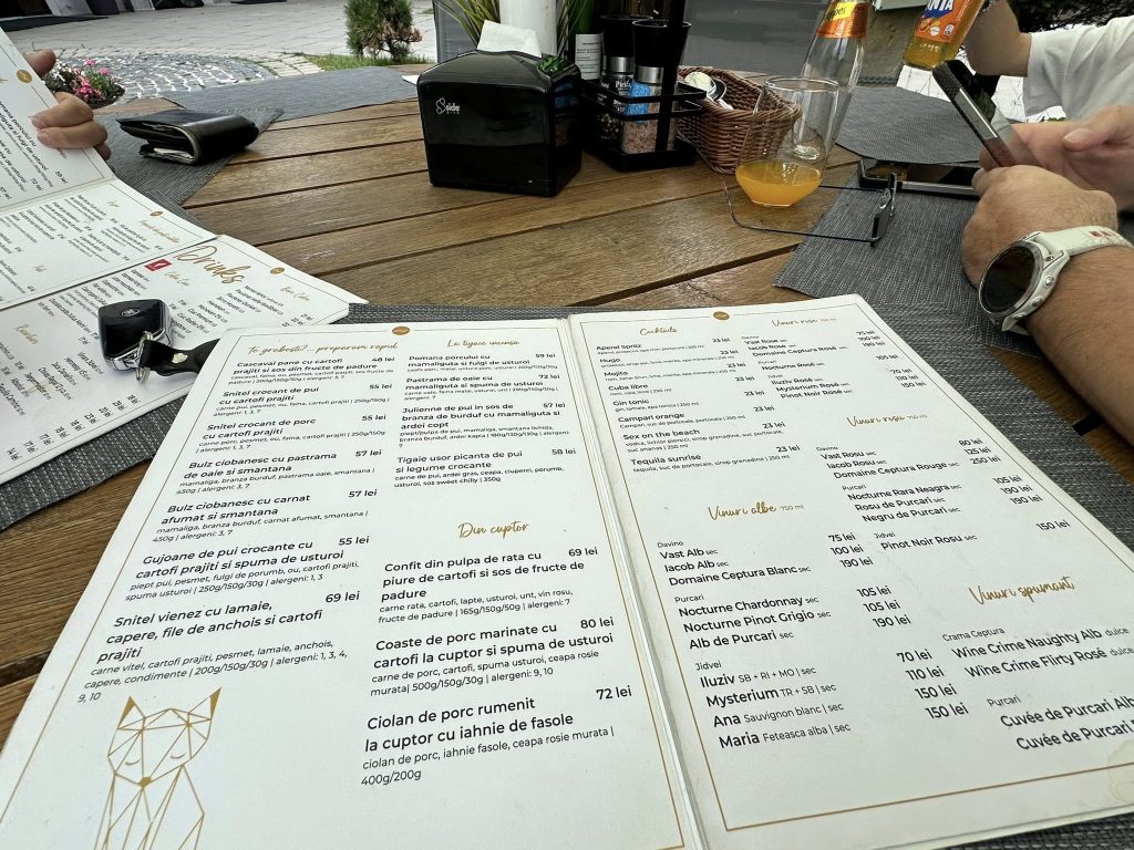 Program restaurant: 12:30 – 21:30. Meniul restaurantului este a la carte, și timpul mediu de așteptare a fost undeva la 30 min. Mâncarea are un raport calitate-preț, perceput de noi, ca fiind bun.
