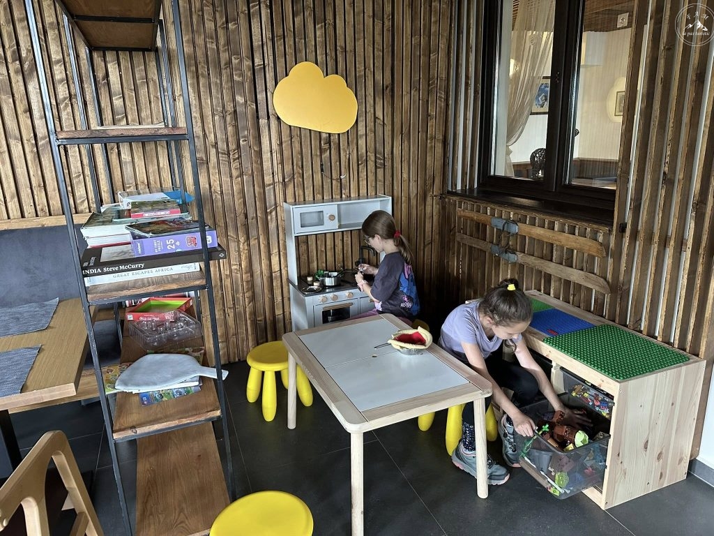 Pensiunea are amenajat locul de joacă atât în exterior cât și în interior.