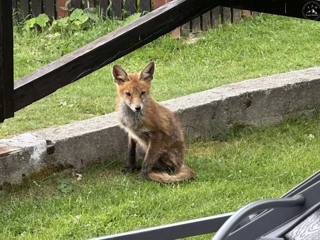 Prin curtea pensiunii intră și se plimbă vicleana vulpe, dar ea este mai inofensivă, un pic.
