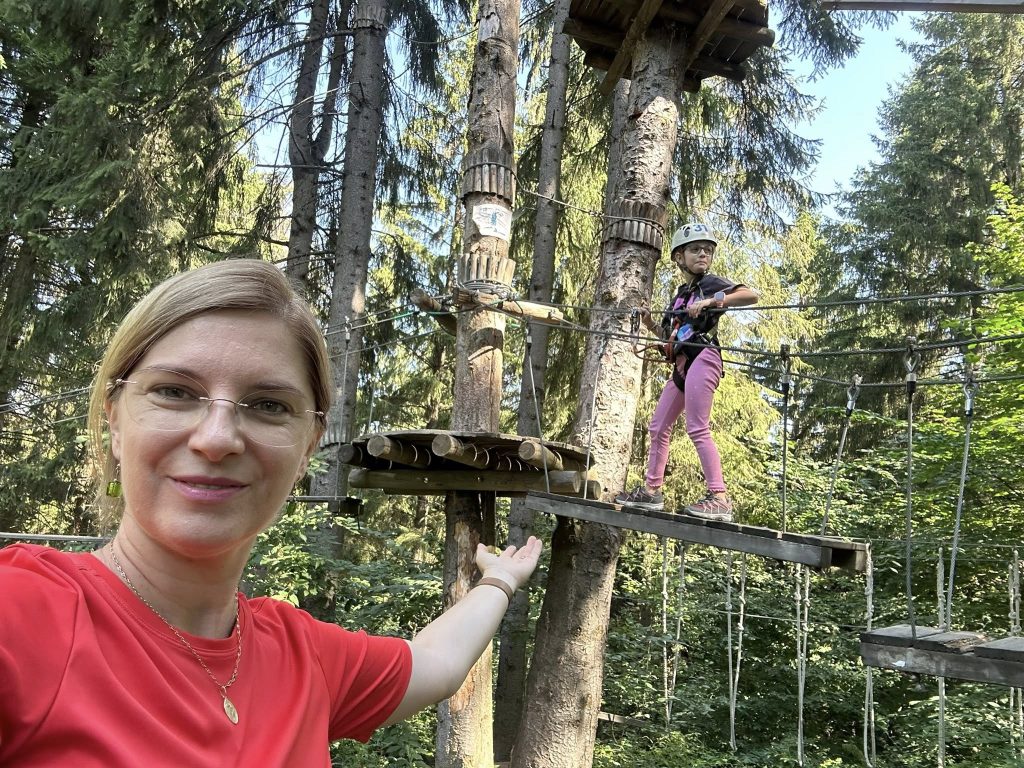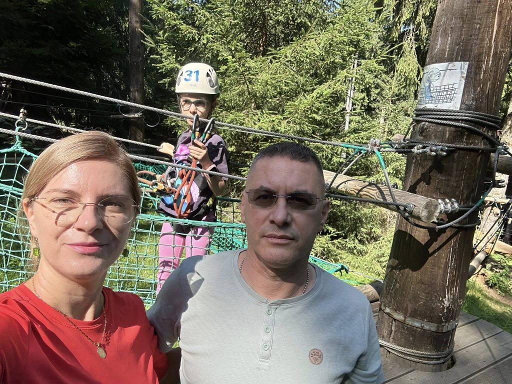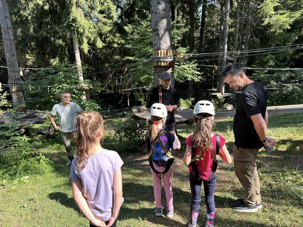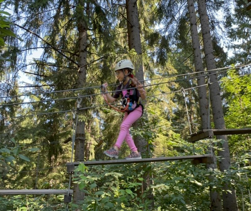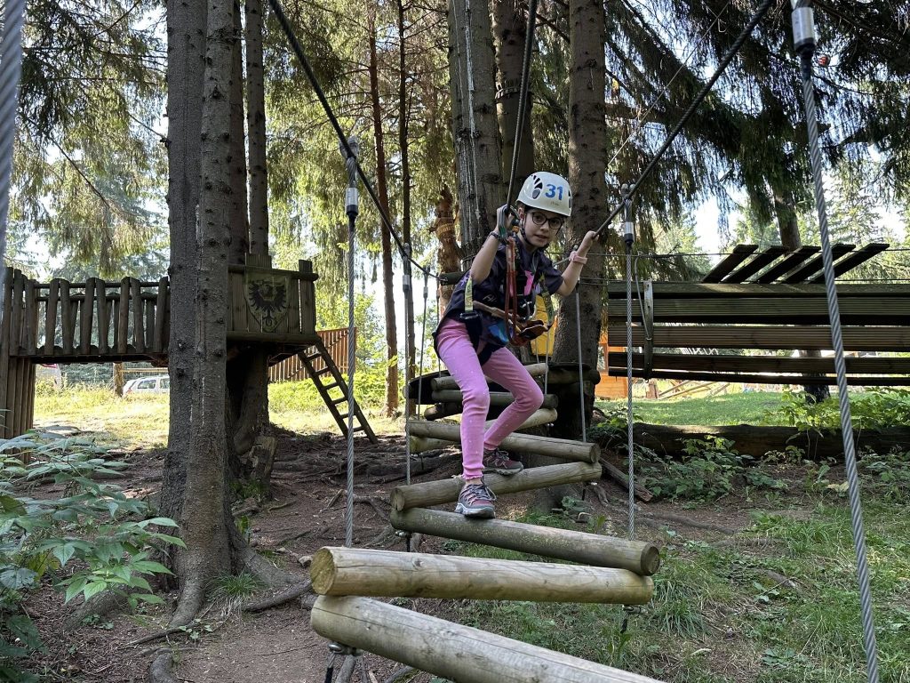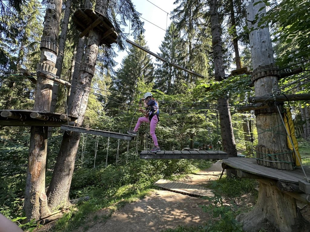 Ce poți face cu copilul sus pe munte în stațiunea montanǎ Păltiniș? Parcurgi trasee de aventură la Arka Park. Mișcare, concentrare, forță, antrenare mușchi, combatere frici.