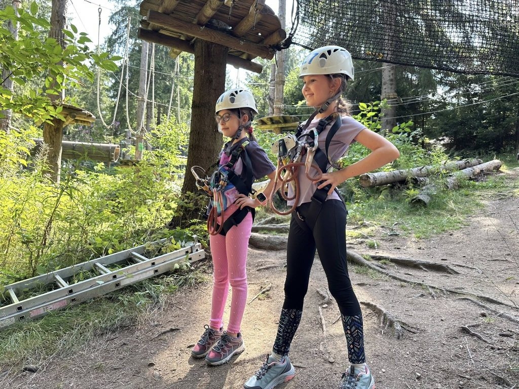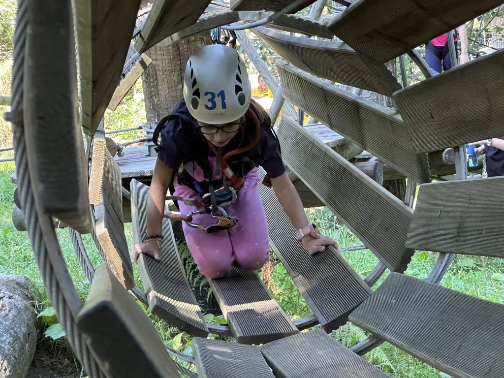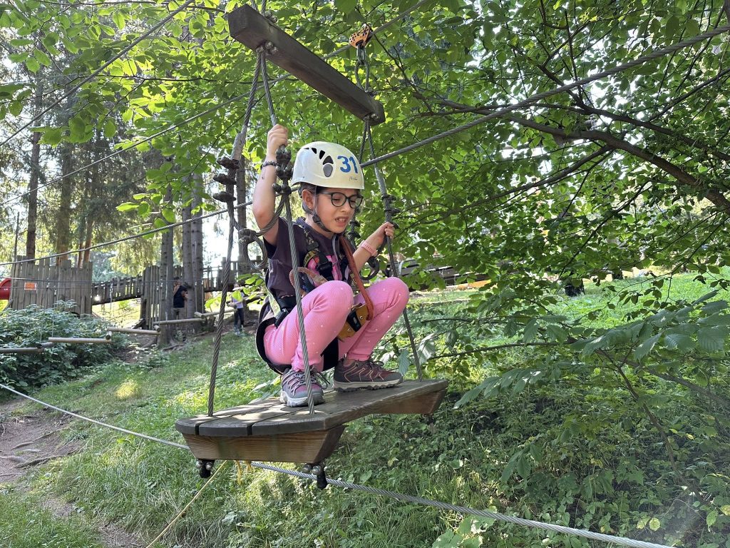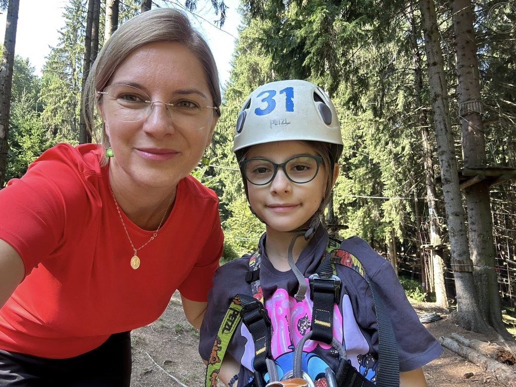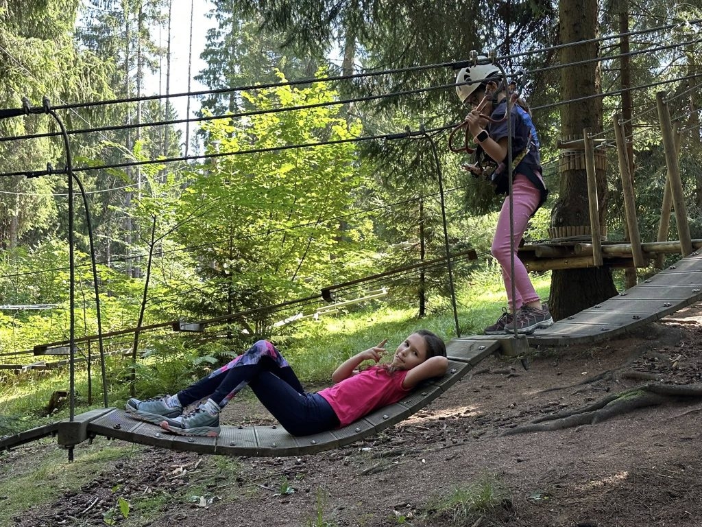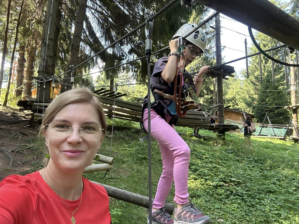 Ce poți face cu copilul sus pe munte în stațiunea montanǎ Păltiniș? Parcurgi trasee de aventură la Arka Park. Mișcare, concentrare, forță, antrenare mușchi, combatere frici.